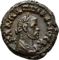 laureate and cuirassed bust of Galerius, right, seen from front