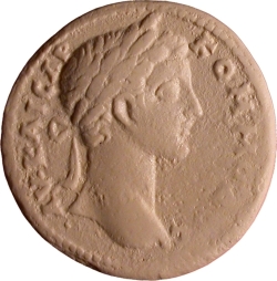 laureate-headed bust of Commodus (youthful) wearing cuirass and paludamentum, right, seen from front