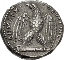 | Syria | Antioch | Hadrian | 25 |  | ΑΥΤ ΚΑΙ ΘΕ ΤΡΑ ΠΑΡ ΥΙ ΘΕ ΝΕΡ ΥΙ ΤΡΑΙ ΑΔΡΙΑΝΟϹ ϹΕΒ | laureate and cuirassed bust of Hadrian, right |  | ΔΗΜΑΡΧ ΕΞ ΥΠΑΤ Γ | eagle standing left on leg and thigh of animal |