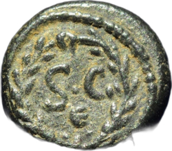 | Syria | Antioch | Hadrian | 10 |  |  | laureate and cuirassed bust of Hadrian, right, with paludamentum, seen from front or rear |  | S C | in laurel wreath; beneath: no letter |