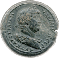 laureate draped and cuirassed bust of Hadrian, right, seen from rear