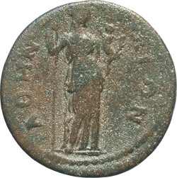 Demeter standing, facing, head, right, holding ears of corn and long sceptre