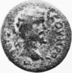 bare-headed, draped and cuirassed bust of Geta, right, seen from rear