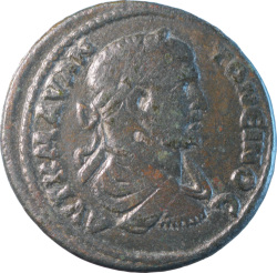 laureate and cuirassed bust of Caracalla, right, seen from front, with gorgoneion on cuirass