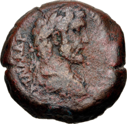 ΑΥΤ Κ Τ ΑΙΛ ΑΔΡ ΑΝΤω[ΝΙΝΟϹ] [; laureate-headed bust of Antoninus Pius wearing cuirass and paludamentum, right, seen from rear