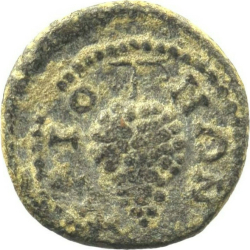 head of Dionysus (youthful) wearing ivy wreath, right