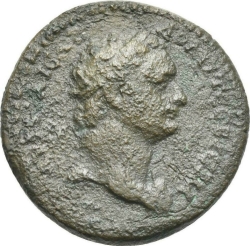 ΑΥΤ ΚΑΙϹ ΘΕΟ(Υ) ΥΙΟϹ ΔΟΜΙΤ ϹΕΒ ΓΕΡΜ; laureate head of Domitian, right