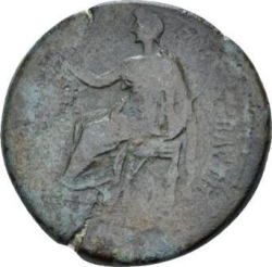 [L ΙΑ]; Dikaiosyne standing facing, head left, holding scales and cornucopia