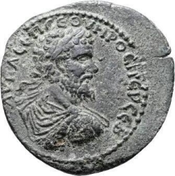 ΑΥ Κ Λ ϹΕΠ ϹΕΟΥΗΡΟϹ ΠΕΡ ϹΕΒ; laureate, draped and cuirassed bust of Septimius Severus, right, seen from front