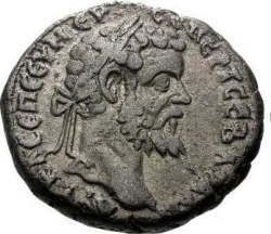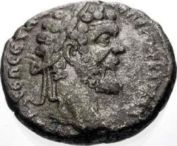 ΑΥΤ Κ Λ ϹΕΠ ϹΕΥΗ ΕΥϹΕ ΠΕΡΤ ϹΕΒ ΑΡΑ ΑΔΙ; laureaute head of Septimius Severus, right
