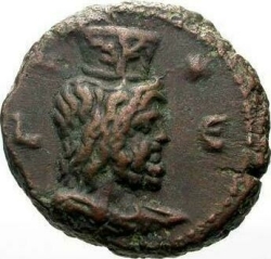 L Ε; Alexandria standing left, holding head of Sarapis and sceptre; to right, star