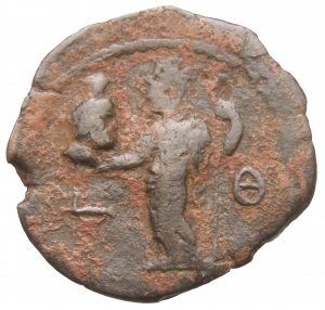 [L] Θ; Ares standing facing, head left, holding long sceptre and parazonium; date in field left