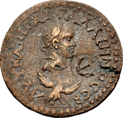 ΑΥΤ ΚΑΙ ΠΟ ΛΙ ΓΑΛΛΙΗΝΟ ϹΕΒ, ΙΑ; laureate, draped and cuirassed bust of Gallienus, right, seen from rear; beneath, eagle, wings open, flying right (wreath)