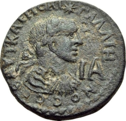 ΑΥΤ ΚΑΙ ΠΟ ΛΙ ΓΑΛΛΙΗΝΟϹ ϹΕΒ, ΙΑ; laureate, draped and cuirassed bust of Gallienus, right, seen from rear