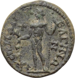 Æ (21 mm)   4.49 g. 																							  ΔΗΜΟϹ;  laureate head of Demos, right, with drapery on left shoulder  ΕΠΙ ΓΑΙΟΥ ΑΡΧ (Α) ΒΑΓΗΝΩΝ ΕΡΜΟϹ;  river god (Hermos) reclining left, holding reed and resting on overturned vase