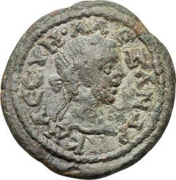 ΑΥ Κ Μ ΑΥ ϹΕΥΗΡΟϹ ΑΛΕΞΑΝΔΡΟϹ; laureate, draped and cuirassed bust of Severus Alexander, right, seen from rear