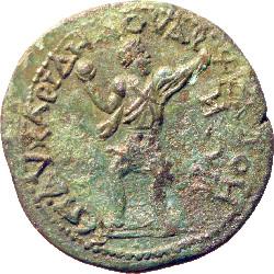 ΕΠΙ ΑΥΡ ΧΑΡΙΔΗΜΟϹ ΑΡΧ ΤΟ Β ΚΑΔΟΗΝΩΝ; Tyche standing left, holding rudder on globe and cornucopia