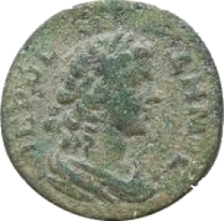 ΕΠΙ ΓΡ ΚΛ ΜΕΝΙΠΠΟΥ ΚΕΝ ΤΡΑΛΛΙΑΝΩΝ; Tyche standing left, holding rudder and cornucopia