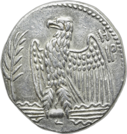 Η ΙΡ (to r.); eagle on thunderbolt, left; to left, palm branch