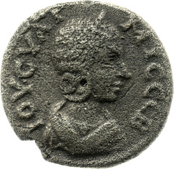 ΙΟΥΛΙΑ ϹΟΑΙΜΙΑ ϹΕΒ; draped bust of Julia Soaemias, right