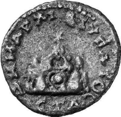 ΠΡΟΝΟΙΑ ΘΕωΝ; eagle standing facing, wings spread, head left, standing on palm
