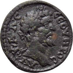ΑΥΤ ΚΑΙ Λ ϹΕΟΥΗΡ; laureate head of Septimius Severus, right