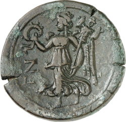 L Ζ; draped bust of Sarapis wearing kalathos and laurel wreath, right