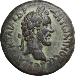 ΑΥΤ Κ Τ ΑΙΛ ΑΔΡ ΑΝΤωΝΙΝΟϹ Ϲ[ΕΒ ΕΥϹ; laureate-headed bust of Antoninus Pius wearing cuirass and paludamentum, right, seen from rear