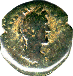 ΑΥΤ Κ Τ [ΑΙΛ ΑΔΡ ΑΝΤωΝΙΝΟϹ ϹΕΒ ΕΥϹ; laureate head of Antoninus Pius with traces of drapery, right