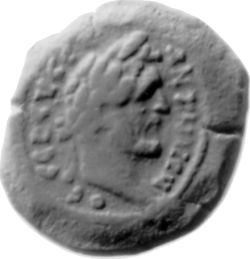 ΑΝΤωΝΙΝΟϹ ϹΕΒ ΕΥϹΕΒ; laureate head of Antoninus Pius, right