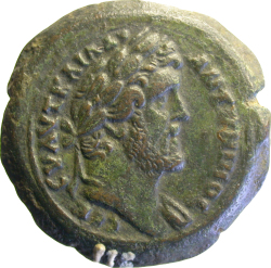 ] ΑΙΛ ΑΔΡ ΑΝΤΩΝΙΝ[ΟϹ] [ (?); laureate head of Antoninus Pius with traces of drapery, right
