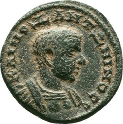 M OP ANTONINOS NOB CAES; bare-headed, draped and curiassed bust of Diadumenian, right, seen from front