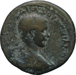 [Μ] ΟΠΕΛ ΑΝΤΩ ΔΙΑΔΟΥΜΕΝΙΑΝΟϹ; bare-headed, draped and cuirassed bust of Diadumenian, right, seen from rear