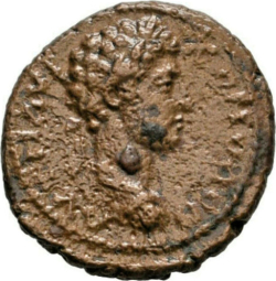 Α Κ Μ ΑΥ Κο ΑΝΤωΝΙΝ; bare-headed bust of Commodus wearing cuirass(?) and paludamentum, right