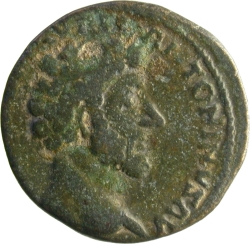 [ΑΥΤ Κ Μ ΑΥ]ΡΗΛ ΑΝΤΩ[ΝΙΝΟϹ ϹΕ; radiate head of Marcus Aurelius, right