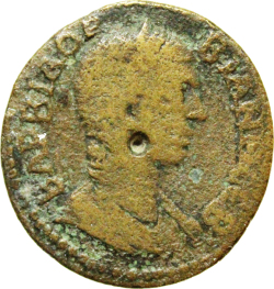 ΓΝΑΙΑ Ϲ ΕΡΝΙΑ ΒΑΡΑ ΟΡΒΙΑΝΗ Ϲ; diademed and draped bust of Orbiana, right