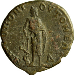 ΜΗΤΡΟ ΠΟΝΤ(ΟΥ) ΤΟΜΕΩϹ (or ΤΟΜΕΩϹ) Δ; Asclepius standing facing, head left, resting on serpent-staff
