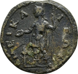 Μ ΑΥΡ ϹΕΥΗ ΑΛΕΖΑΝΔΡΟϹ (or ϹΕΥΗ ΑΛΕΞΑΝΔΡΟϹ) ΑΥ(Γ); laureate, draped and cuirassed bust of Severus Alexander, right, seen from rear