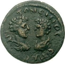 ΑΝΤΩΝΕΙΝΟϹ ΓΕΤΑϹ; facing bare-headed, draped and cuirassed busts of Caracalla to left looking right and Geta to right looking left