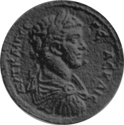 Π ϹΕΠΤ ΓΕΤΑϹ ΚΑΙ; draped and cuirassed bust of Geta, right, seen from rear