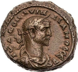 ΑΥΤ (Κ) Λ(ΟΥ) ΔΟΜ ΑΥΡΗ(Ι)ΛΙΑΝΟϹ ϹΕ(Β), Ι; laureate, draped and cuirassed bust of Aurelian, right, seen from rear