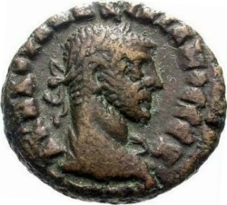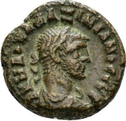 Α Κ ΜΑ ΟΥΑ ΜΑΞΙΜΙΑΝΟϹ ϹΕΒ; laureate, draped and cuirassed bust of Maximian, right, seen from rear