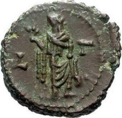 L Γ; Eirene standing left, holding olive branch and sceptre