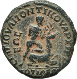 ΕΠΙ Γ ΙΟΥ ΠΟΝΤΙΚΟΥ ΑΡΧΙΕ(ΡΕ) ΚΟΤΙΑΕΩΝ; Tyche standing left, holding rudder and cornucopia