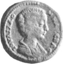 ΙΟΥ ΔΟΜΝ ϹΕΒ; draped bust of Julia Domna, left