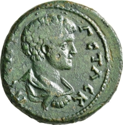 ΑΥ Κ Λ ϹΕΠΤ ϹΕΥΗΡΟϹ ΠΕ; laureate head of Septimius Severus, right
