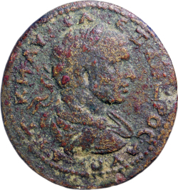 ΑΥΤ Κ Μ ΑΥΡ ϹΕΒ ΑΛΕΞΑΝΔΡΟϹ; laureate, draped and cuirassed bust of Severus Alexander, right, seen from front