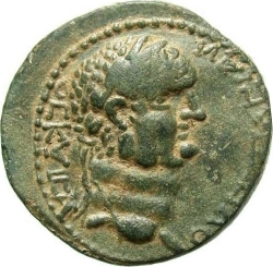 ΕΠΙ Κ(Λ)(ΑΥ) ΑΡΕΤΙΔΟΣ ΦΙΛΟΠΑ(ΤΡΙ); Zeus (?) standing, left, with hand raised