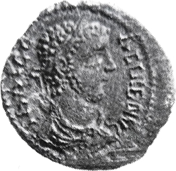 VALERIANVS NOBIL CAES; laureate, draped and cuirassed bust of Valerian II, right, seen from rear