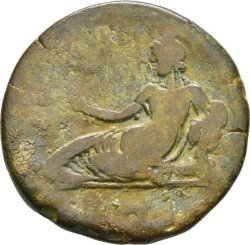 L ΕΝΝΕΑΚ·Δ; Euthenia reclining on sphinx, left, holding ears of corn